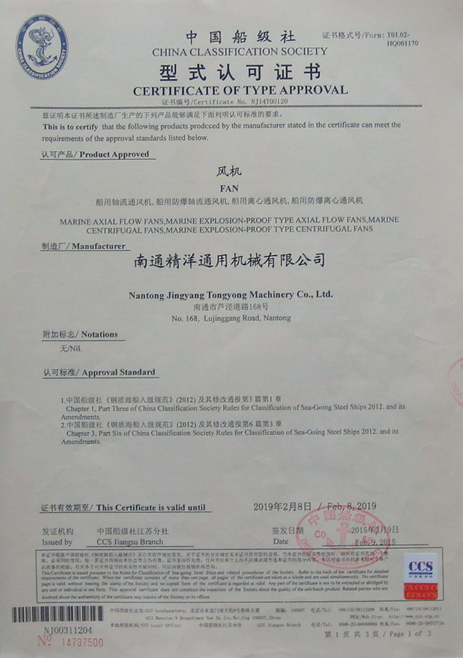 中國(guó)船級(jí)社型式認(rèn)可證書(2015)